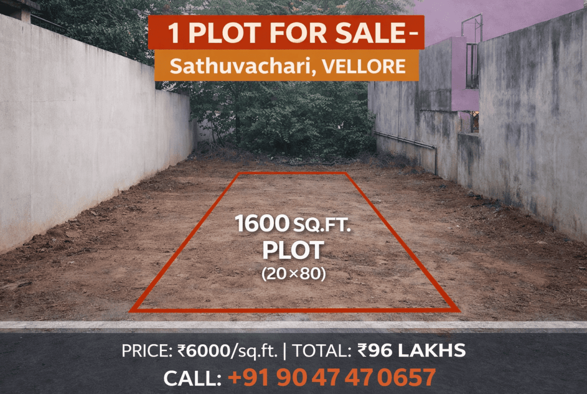 This residential plot in Sathuvachari, Vellore is ideal for constructing an independent house or for long-term investment. Located in a well-developed residential locality, the plot offers excellent connectivity and access to essential amenities.