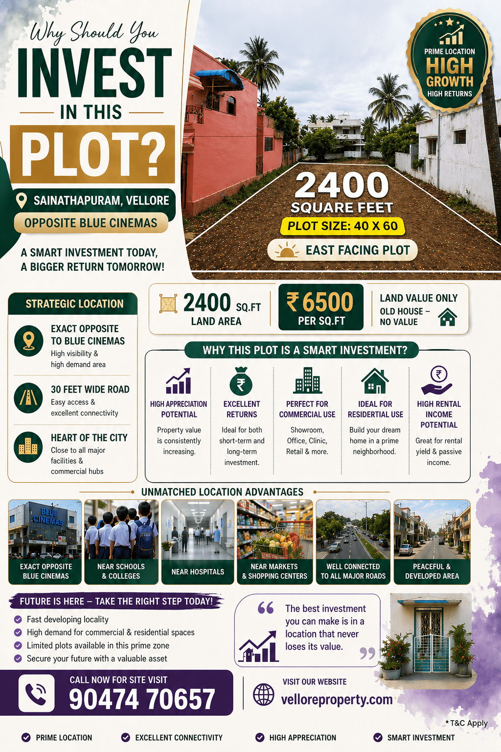 Discover premium independent Plot located in a well-developed residential area of Sainathapuram, Vellore. Thoughtfully designed for modern living, these Plot offer spacious layouts, vastu-compliant planning, and quality construction. Situated in a prime location with excellent connectivity, this property is ideal for comfortable family living and long-term investment. Land price ₹6500 per sq.ft (applicable for land only)—limited availability, secure your dream plot today.